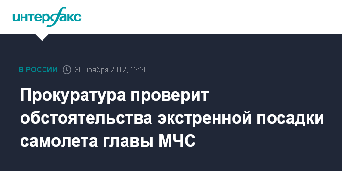 Прокуратура проверит обстоятельства экстренной посадки самолета главы МЧС
