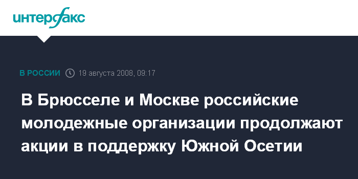 В Брюсселе и Москве российские молодежные организации продолжают акции в поддержку Южной Осетии
