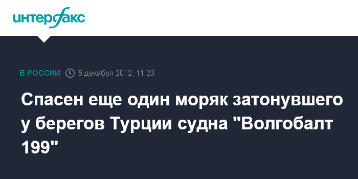 Как сообщалось, сухогруз "Волгобалт 199" затонул во вторник у берегов Турции. На борту судна находились 11 граждан Украины и один россиянин. Судно шло с грузом угля.