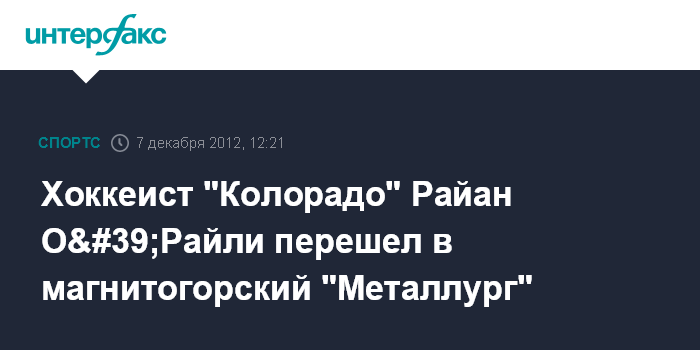Отмечается, что согласно устной договоренности, если О'Райли будет предложен контракт на более выгодных условиях в НХЛ, то "Магнитка" не будет препятствовать его заключению.
