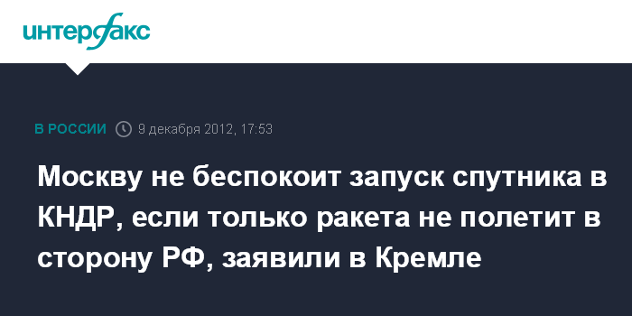 Москву не беспокоит запуск спутника в КНДР, если только ракета не полетит в сторону РФ, заявили в Кремле