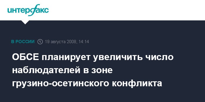 Брюссель. 19 августа. INTERFAX.RU - ОБСЕ планирует увеличить присутствие военных наблюдателей в зоне грузино-осетинского конфликта до 100 человек, сообщил сегодня в Брюсселе в штаб-квартире НАТО председательствующий в офисе ОБСЕ Александр Стуб.