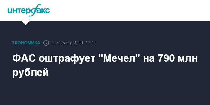 ФАС оштрафует "Мечел" на 790 млн рублей