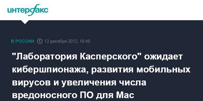 "Лаборатория Касперского" ожидает кибершпионажа, развития мобильных вирусов и увеличения числа вредоносного ПО для Mac