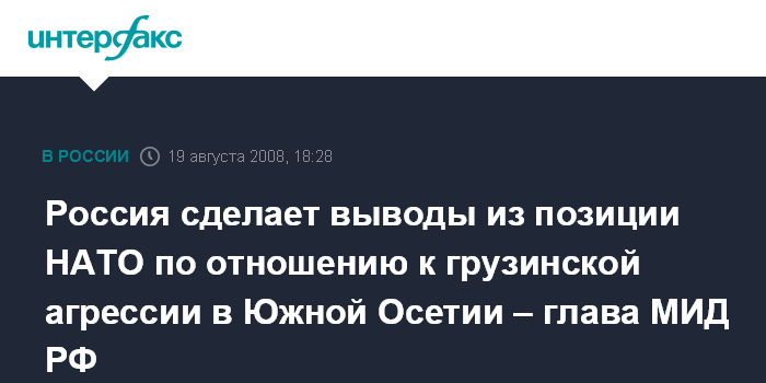 Россия сделает выводы из позиции НАТО по отношению к грузинской агрессии в Южной Осетии – глава МИД РФ