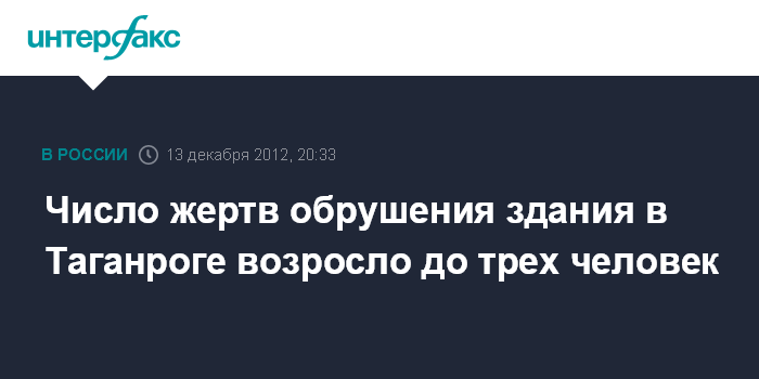 Ростов-на-Дону. 13 декабря. INTERFAX.RU - При обрушении здания в Таганроге погибли три человека, сообщили агентству "Интерфакс-Юг" в ГУ МЧС РФ по Ростовской области.