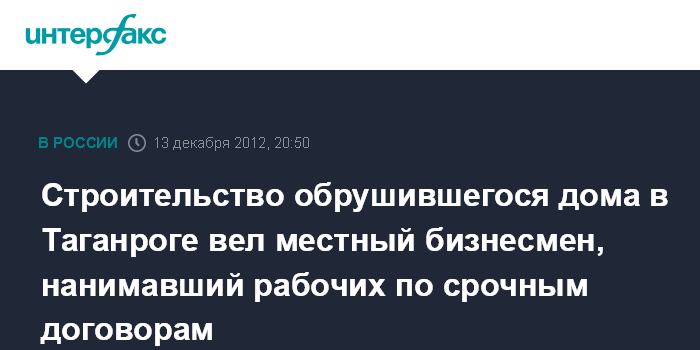 Строительство обрушившегося дома в Таганроге вел местный бизнесмен, нанимавший рабочих по срочным договорам