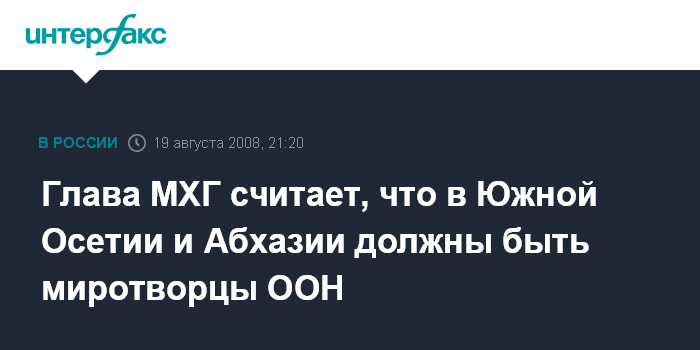 "И Россия, и Грузия должны вывести своих военных из Южной Осетии и Абхазии, в обоих регионах их военные силы должны быть заменены военным присутствием миротворческих соединений ООН", - сказала глава Московской Хельсинкской группы (МХГ) Людмила Алексеева.