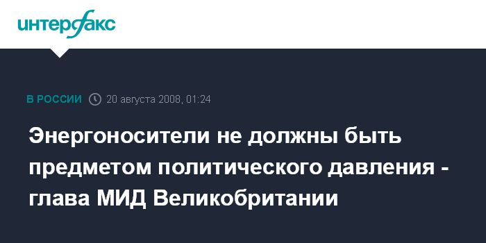 Тбилиси. 20 августа. ИНТЕРФАКС - Глава МИД Великобритании считает крайне важным вопрос энергополитики Евросоюза во взаимоотношениях с Россией.