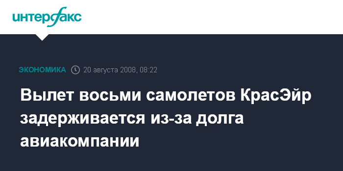 Вылет восьми самолетов КрасЭйр задерживается из-за долга авиакомпании