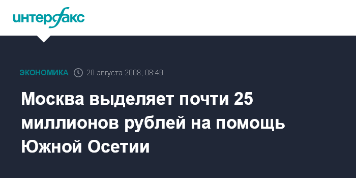 Моcква выделяет почти 25 миллионов рублей на помощь Южной Осетии