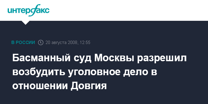 Как сообщила "Интерфаксу" руководитель пресс-службы Мосгорсуда Анна Усачева, суд разрешил возбудить уголовное дело в отношении Д.Довгия, удовлетворив ходатайство СКП.