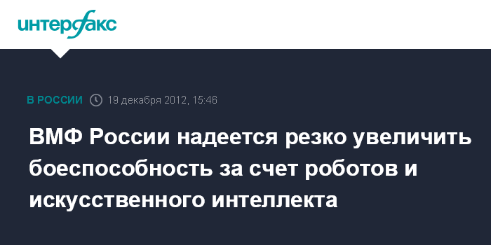 Москва. 19 декабря. INTERFAX.RU - Главком ВМФ России адмирал Виктор Чирков считает, что боевые возможности флота можно расширить за счет внедрения робототехники, систем искусственного интеллекта и нелетального оружия.