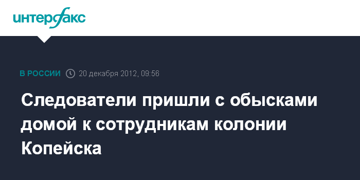 Челябинск. 20 декабря. INTERFAX.RU - В рамках расследования уголовного дела, возбужденного после акции протеста в колонии №6 Копейска Челябинской области, проходят обыски в домах работников этого исправительного учреждения.