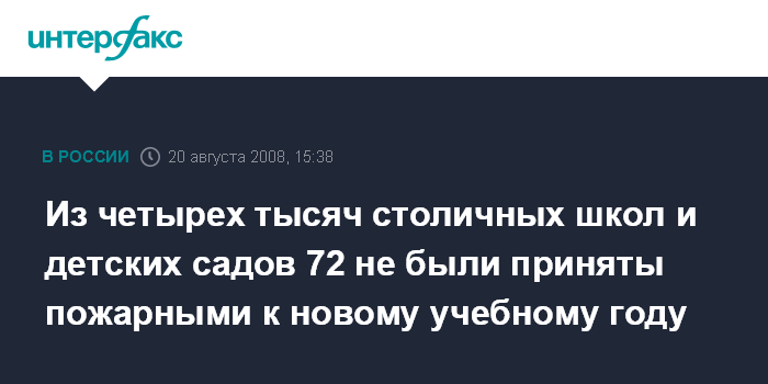 Из четырех тысяч столичных школ и детских садов 72 не были приняты пожарными к новому учебному году