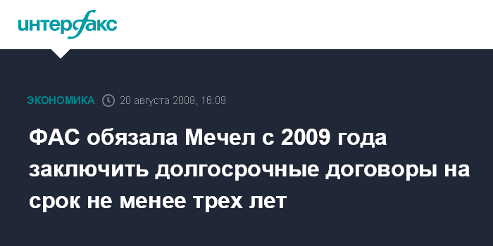 ФАС обязала Мечел с 2009 года заключить долгосрочные договоры на срок не менее трех лет