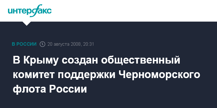 Киев. 20 августа. ИНТЕРФАКС-УКРАИНА - Русская община Крыма и Российская община Севастополя создали общественный комитет поддержки Черноморского флота РФ.