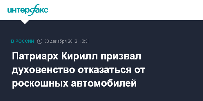 Москва. 28 декабря. INTERFAX.RU - Патриарх Московский и всея Руси Кирилл выступил с критикой священнослужителей, которые ездят на дорогих иностранных машинах.