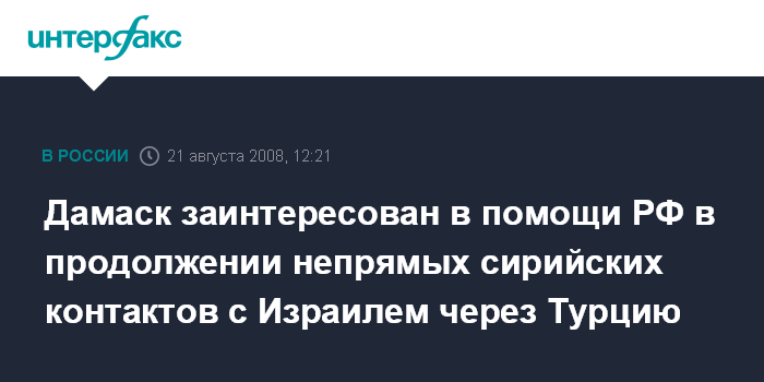 Дамаск заинтересован в помощи РФ в продолжении непрямых сирийских контактов с Израилем через Турцию