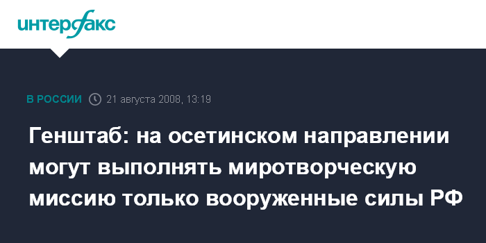 Генштаб: на осетинском направлении могут выполнять миротворческую миссию только вооруженные силы РФ