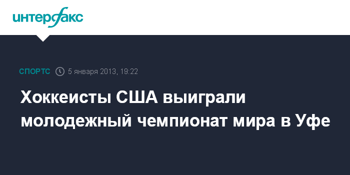 Уфа. 5 января. INTERFAX.RU - Молодежная сборная США по хоккею в финале чемпионата мира в Уфе обыграла Швецию и стала победителем турнира.