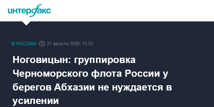"На сегодняшний день в наши планы не входит усиление группировки. Он (Черноморский флот РФ - ИФ) не нуждается в усилении", - сказал журналистам в четверг в Москве замначальника российского Генштаба генерал-полковник Анатолий Ноговицын.