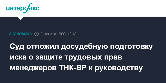 Суд отложил досудебную подготовку иска о защите трудовых прав менеджеров ТНК-ВР к руководству