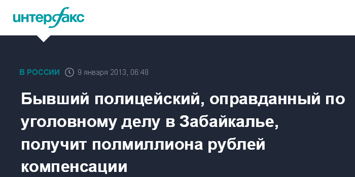 Бывший полицейский, оправданный по уголовному делу в Забайкалье, получит полмиллиона рублей компенсации