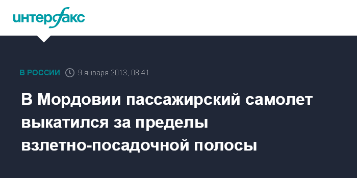 Самолет Ан-24 авиакомпании "Авиалинии Мордовии", прилетевший из Краснодара, в 01:15 мск после посадки в Саранске выкатился за пределы взлетно-посадочной полосы на 30 метров.