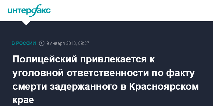 Полицейский привлекается к уголовной ответственности по факту смерти задержанного в Красноярском крае