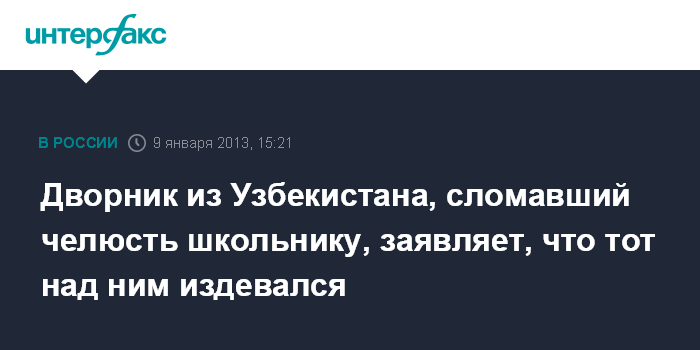 Дворник из Узбекистана, сломавший челюсть школьнику, заявляет, что тот над ним издевался