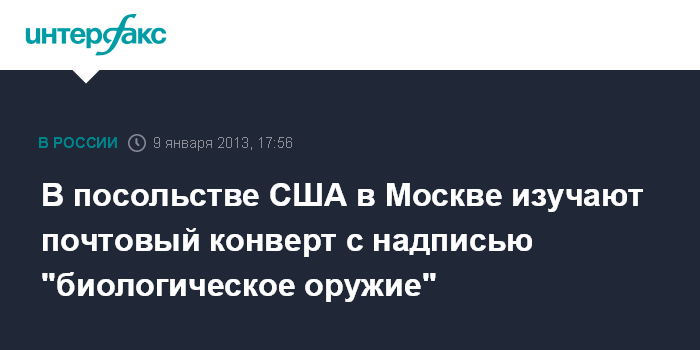 В посольстве США в Москве изучают почтовый конверт с надписью "биологическое оружие"