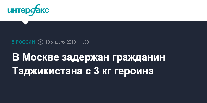 Москва. 10 января. INTERFAX.RU - Столичные наркополицейские во время новогодних праздников задержали в Москве нелегального мигранта из Таджикистана, у которого обнаружили несколько килограммов героина.