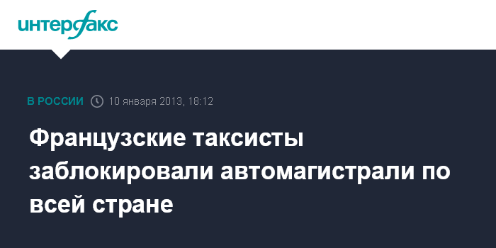 Париж. 10 января. INTERFAX.RU - Французские водители такси заблокировали основные автомагистрали по всей стране в знак протеста против правительственной реформы, которая, по их мнению, нанесет убытки их бизнесу, сообщают в четверг представители Национального профсоюза водителей такси. В частности во французской столице были заблокированы автострады, ведущие к двум аэропортам - "Шарль де Голль" и "Орли". Кроме того, машины участников акции протеста выстроились в ряды по дороге к вокзалам.