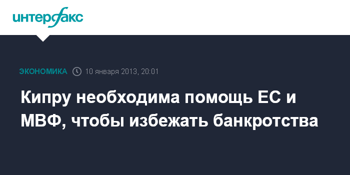 Финансовая помощь Евросоюза и Международного валютного фонда (МВФ) является "единственным способом" решения проблемы Кипра, и если помощь не будет получена, страна станет банкротом, цитирует материалы агентство Bloomberg.