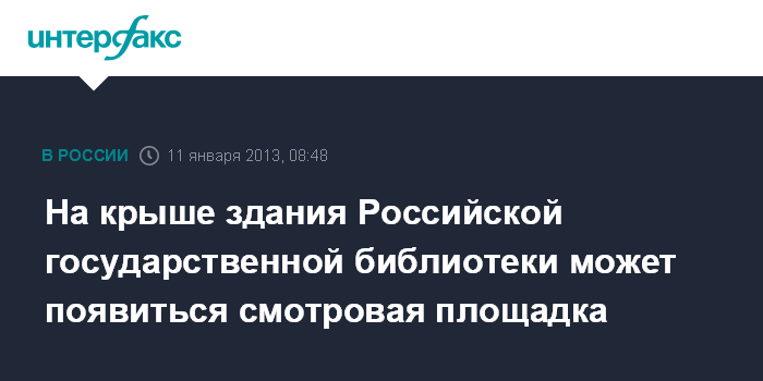 Москва. 11 января. INTERFAX.RU - Место гигантских рекламных букв, демонтированных с крыши Российской государственной библиотеки (бывшей Библиотеки имени Ленина), может занять первая смотровая площадка для туристов в центре города, пишет газета "Известия" в пятницу со ссылкой на пресс-службу учреждения.