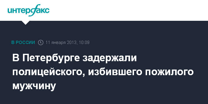 Санкт-Петербург. 11 января. INTERFAX.RU - Оперативники уголовного розыска задержали в Петербурге лейтенанта полиции, подозреваемого в избиении пожилого мужчины, сообщает пресс-служба ГУ МВД по региону.