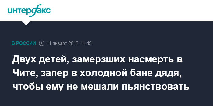 Второго января родители отправились в гости. Оставшиеся одни мальчики 5 и 6 лет и трехлетняя девочка зашли гости к своему дяде, проживавшему во второй квартире этого же дома. Дома осталась лишь младшая девочка, которой исполнился год и 2 месяца. В гостях у дяди дети расшалились. Он, несмотря на то, что на улице стоял 25-градусный мороз, запер всех троих малышей в нетопленной бане. Они там провели около 7 часов. Для братьев полученные обморожения стали смертельными, их сестре предстоит ампутация ступней.