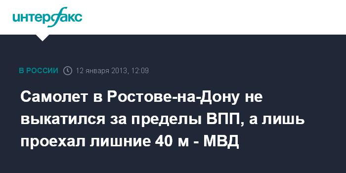 Самолет в Ростове-на-Дону не выкатился за пределы ВПП, а лишь проехал лишние 40 м - МВД