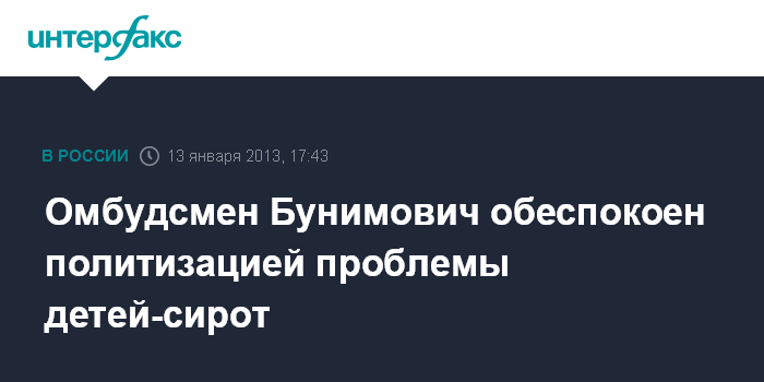 "Такой серьезный вопрос, как права детей, тем более - права наиболее уязвимой их категории, права детей-сирот, вопросы усыновления нельзя решать с помощью поспешной поправки к явно политизированному закону, посвященному к тому же совсем другим вопросам. Здесь сиюминутная политика вошла в пространство, которое должно быть для нее закрыто", - заявил Е.Бунимович в воскресенье "Интерфаксу".