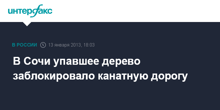 Сочи. 13 января. INTERFAX.RU - На нижнем участке канатной дороги горнолыжного курорта "Роза Хутор" упало дерево, которое заблокировало ее движение, сообщили агентству "Интерфакс-Юг" в службе МЧС города-курорта.