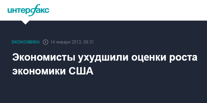 Москва. 14 января. INTERFAX.RU - Экономисты, участвующие в опросе MarketWatch, ухудшили оценки роста американского ВВП в 4-м квартале 2012 года с 1,3% до 1,2%. Консенсус-прогноз роста ВВП снижен после выхода данных о резком увеличении внешнеторгового дефицита США в ноябре.