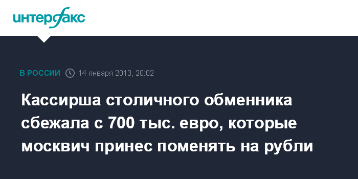 Кассирша столичного обменника сбежала с 700 тыс. евро, которые москвич принес поменять на рубли