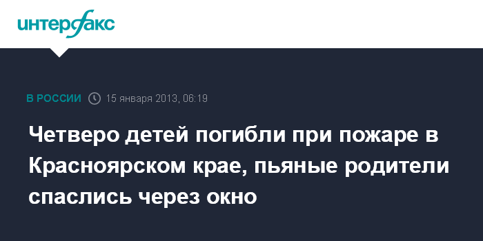 Четверо детей погибли при пожаре в Красноярском крае, пьяные родители спаслись через окно