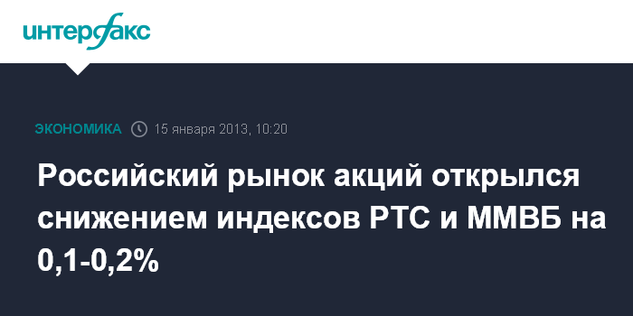 Российский рынок акций открылся снижением индексов РТС и ММВБ на 0,1-0,2%