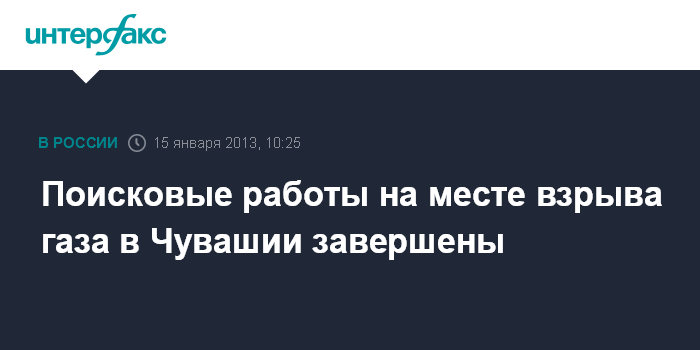 Москва. 15 января. INTERFAX.RU - МЧС завершило поисково-спасательную операцию на месте развалин жилого дома в Чувашии, где утром во вторник взорвался бытовой газ, сообщили "Интерфаксу" в Управлении информации ведомства.