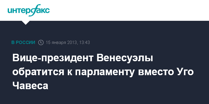 Каракас. 15 января. INTERFAX.RU - Вице-президент Венесуэлы Николас Мадуро намерен во вторник выступить с так называемым "обращением президента" перед Национальной Ассамблеей вместо отсутствующего по состоянию здоровья президента страны Уго Чавеса, сообщила государственная радиостанция Венесуэлы.