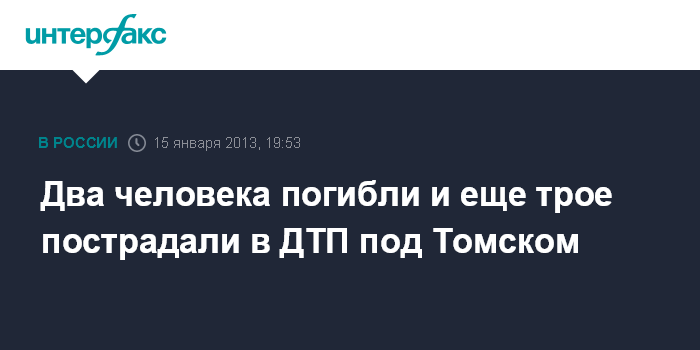 В результате ДТП погибли два пассажира ВАЗа - мужчина 1956 г.р. и женщина 1979 г.р. Кроме того, травмы получили три человека, в том числе девушки 15 и 17 лет. Пострадавшие доставлены в медучреждения Томска.