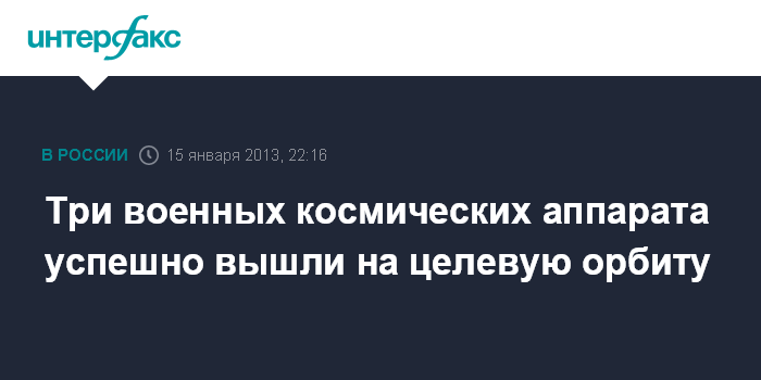 Плесецк (Архангельская область). 15 января. INTERFAX.RU - Ракета-носитель "Рокот", стартовавшая во вторник с космодрома Плесецк, успешно вывела на целевую орбиту три космических аппарата в интересах Минобороны РФ, сообщил во вторник "Интерфаксу-АВН" официальный представитель Войск воздушно-космической обороны (ВВКО) полковник Алексей Золотухин.