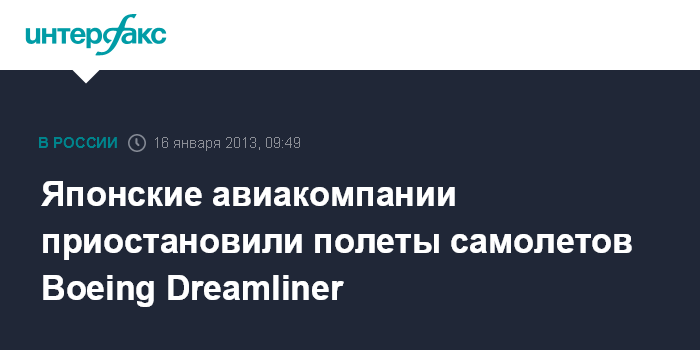 Японские авиакомпании приостановили полеты самолетов Boeing Dreamliner